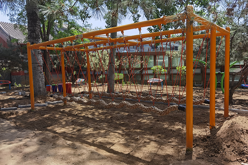 绳网桥,走在上面是不是 有空中行走的感觉,相当锻炼孩子们的胆量了。