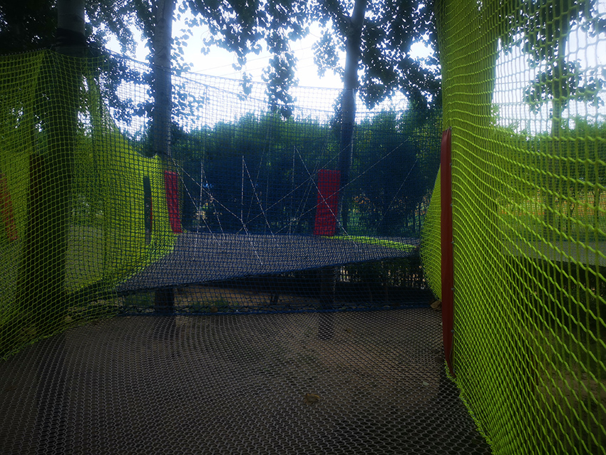 带有绳子拦截的障碍区域,增加玩耍的难度,锻炼孩子们的应对能力。