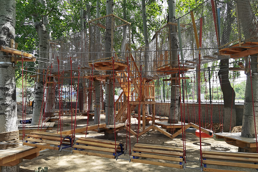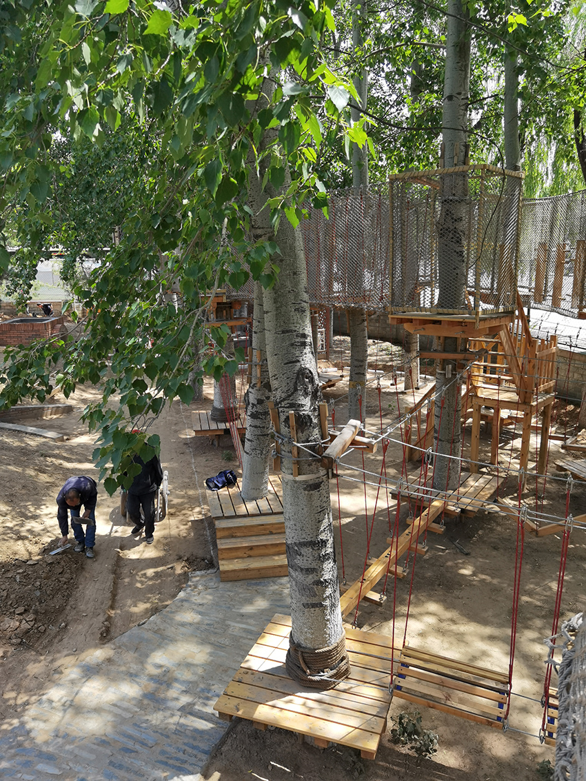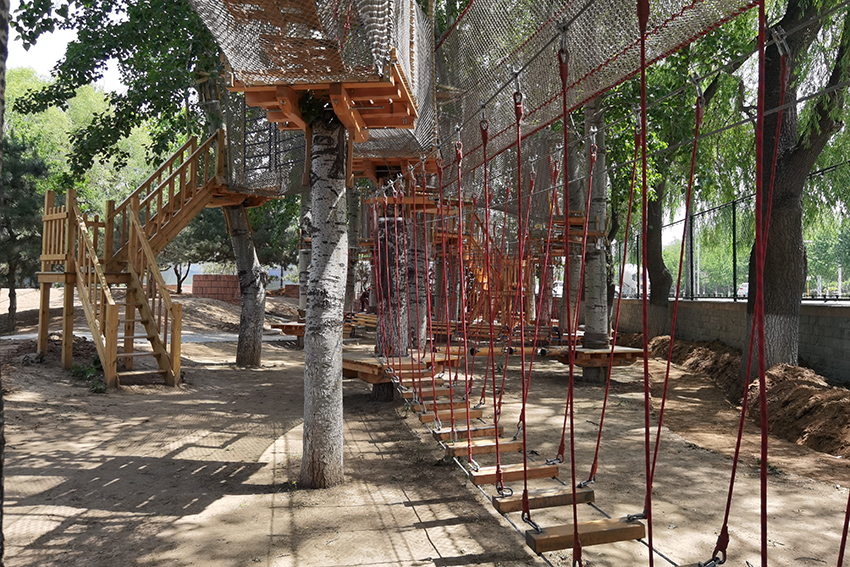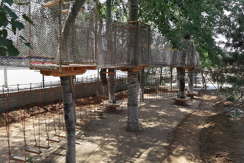 下面是拓展区,适合孩子体能训练,有绳网的保护,高空行走也很安全。